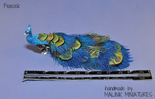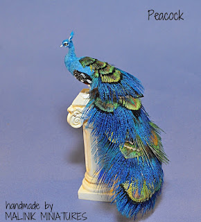 Dollhouse Miniature Realistic Peacock OOAK bird - handmade by Malinik Miniatures