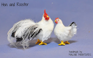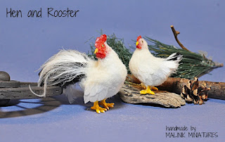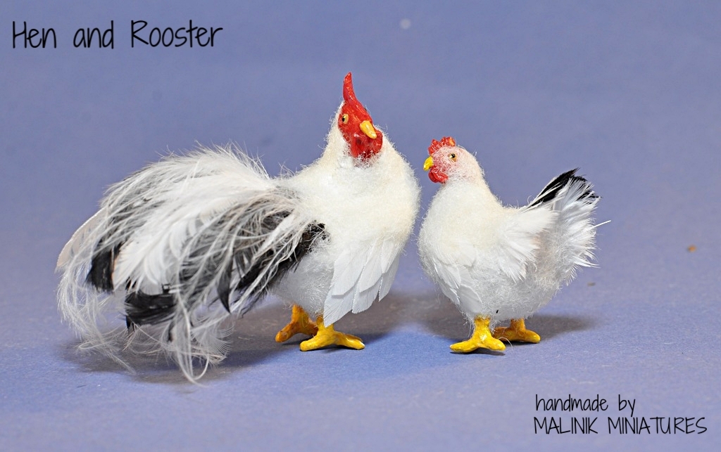 Dollhouse Miniature Realistic Handmade Hen and Rooster Chicken OOAK bird -Malinik Miniatures